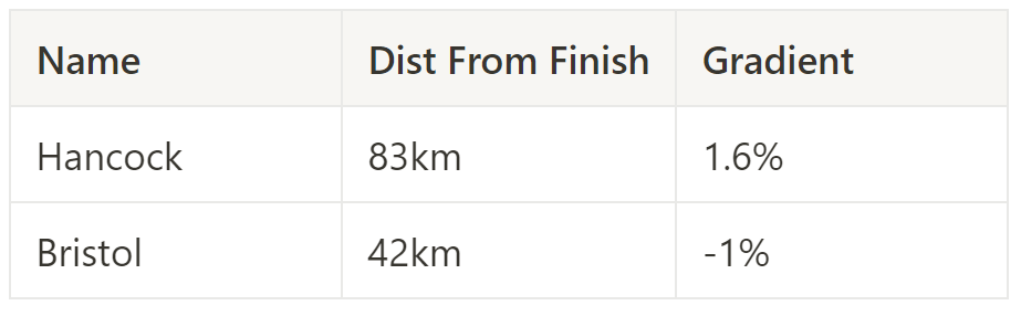 Finish: Last corner is 1.5k from the finish, 3% uphill.